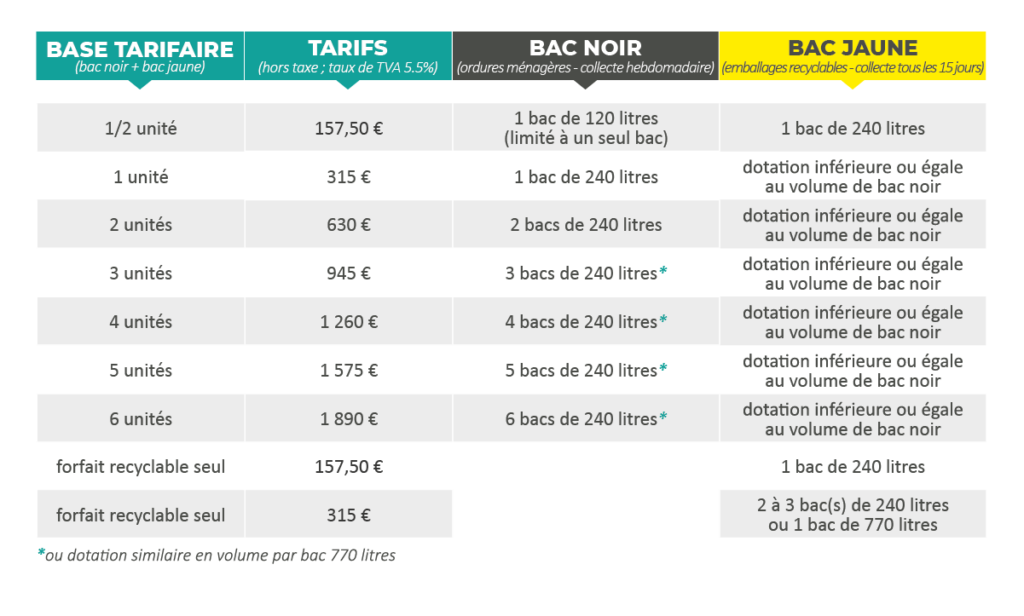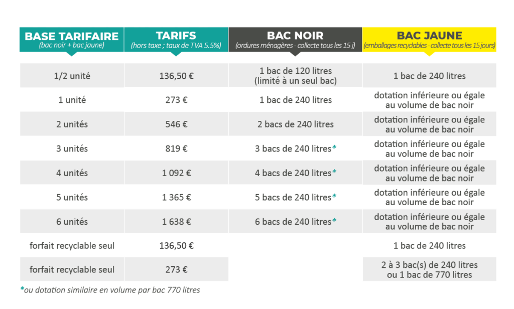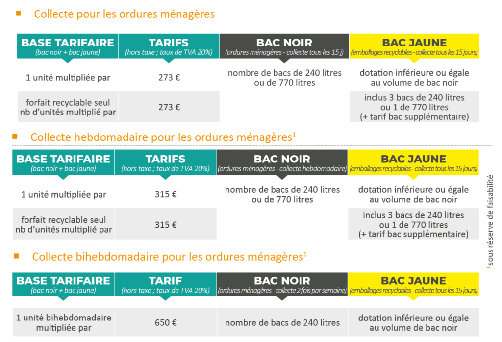 - la collecte en porte à porte des bacs noirs pour les déchets non recyclables ;
