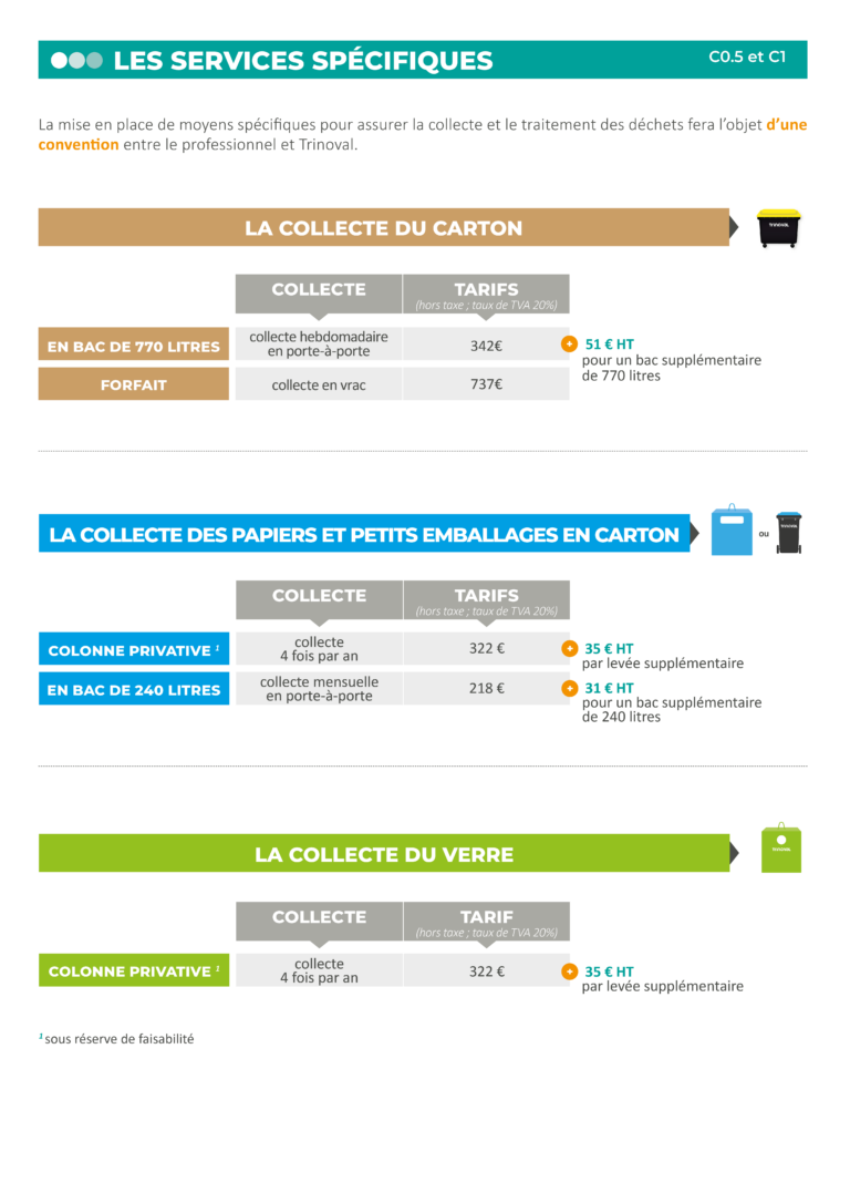 La mise en place de moyens spécifiques pour assurer la collecte et le traitement des déchets fera l’objet d’une convention entre le professionnel et Trinoval.
